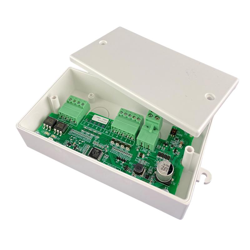 Adresserbar in och utgångsmodul för Neptolux. Med 4st ingångar och 2st utgångar. Ansluts på samma slinga som armaturerna.