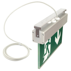 Robust och smidig hänvisningsarmatur utan batteri för anslutning till aggregat. Tillverkad i aluminium och försedd med förinstallerad kabel för extra snabb installation. Montera, anslut kabeln och armaturen är klar för drift utan att behöva öppnas. Kabeln kan enkelt demonteras i armaturen vid behov. Piktogramset ingår, rullstolspiktogram finns som tillbehör. IP44, 25 m läsavstånd, arbetstemp -30°till +50°