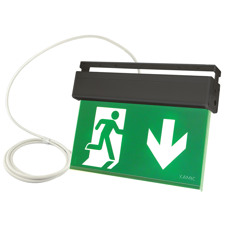 Robust och smidig hänvisningsarmatur i svart utförande. Tillverkad i aluminium och försedd med förinstallerad kabel för extra snabb installation. Montera, anslut kabeln och armaturen är i drift, utan att behöva öppnas. Batteriet är inkopplat och grundladdat, men kräver en uppladdningscykel för säker drift. Kabeln kan enkelt demonteras i armaturen vid behov. Försedd med autotest. Piktogramset ingår, rullstolspiktogram finns som tillbehör. IP44, 40 m läsavstånd. Arbetstemp 5°- 40°