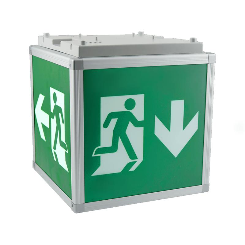 Alucube II är en hänvisningsarmatur med autotest och inbyggt NiMH-batteri för 1 timme back-up vid nätavbrott. Armatur med ett läsavstånd på hela 52 meter, lämpar den sig väl för stora lokaler som varuhus, lagerlokaler, hallar. Alucube har en stomme i naturanodiserat aluminium. Armaturen levereras med LED-ljuskälla samt med piktogram, pil ned 2st, pil höger, pil vänster, täckskiva grön. Montage: Armaturen kan monteras dikt tak eller nedpendlad via montageöglor.