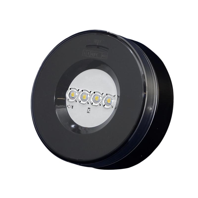 Arque Svart, rundstrålande lins. En extremt mångsidig nödljusarmatur som förutom rent nödljus även går att använda som hänvisningsarmatur med tillbehör. Utformad som en puck med Lithiumjon (LiFeP04) batteri, autotest, samt snabbkopplingsplint för smidig och enkel installation. En mycket ljusstark nödljusarmatur, och om hänvisning önskas, montera bara på tillbehöret piktogramset, så har man en komplett hänvisningsarmatur. Kan monteras på vägg eller i tak. Kit för infällnad i undertak samt väggfäste för flaggmontage finns som tillbehör. Serien finns i vitt och svart utförande. Komplettera med rullstolspiktogram vid behov. Hänvisningsskylt kan monteras på både Arque rundstrålande eller korridorlins. Observera att tillbehöret piktogramset finns i vitt och svart för att passa färgen på armaturhuset.