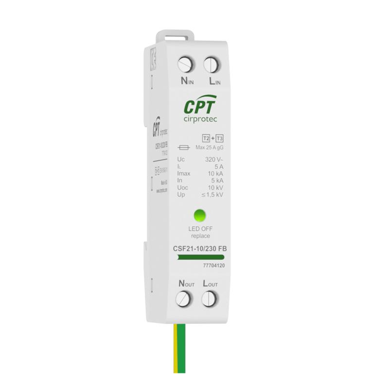 Skyddet är anpassat för LED utomhus gatubelysning, ger ingen läckström, och skall monteras i stolpens kopplingsutrymme på DIN-skena.