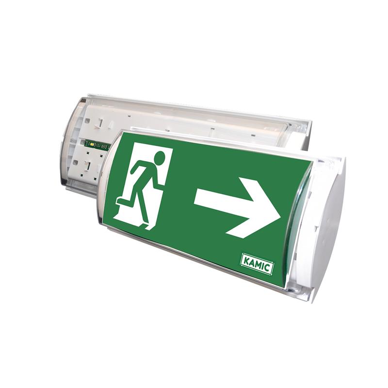 Exodus, enkelsidig centralmatad nödbelysningsarmatur med LED-ljuskälla för montage både inom- och utomhus, i temperaturområde: -20°C till +25°C. Armaturen ansluts till reservkraftaggregat. Armaturen levereras med piktogramset för enkel placering på kupans insida. Läsavstånd 24 meter. Montage: Vägg/tak.