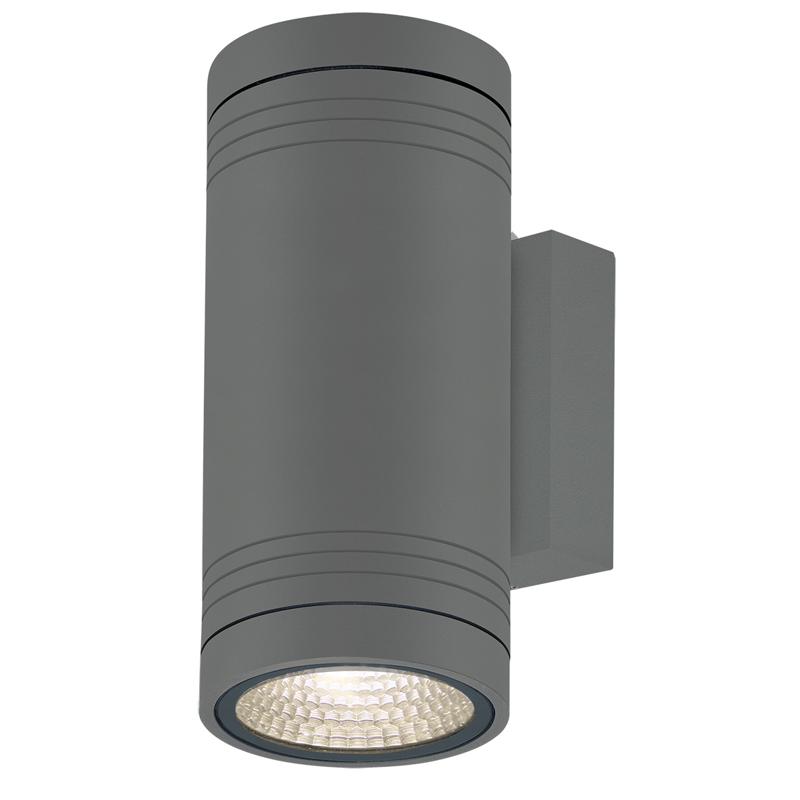 Funkis PRO LED dubbel, antracit 2x9W, 4000K Leveratör: Kamic/Vinga Ljus Fast upp/nedåtriktad ljusstark armatur för vägg, lämplig för belysning i både hem och offentlig miljö. Djupt sittande facetterade reflektorer ger mycket ljus med god avbländning. Tidlös design som passar i de allra flesta miljöer. Överkopplingsbart väggfäste med snabbkopplingsplint och inbyggd driver ger en enkel och smidig installation. Tillverkad i gjutet aluminium. 230V IP44, 55° spridningsvinkel, 2x950lm. Ej dimbar.