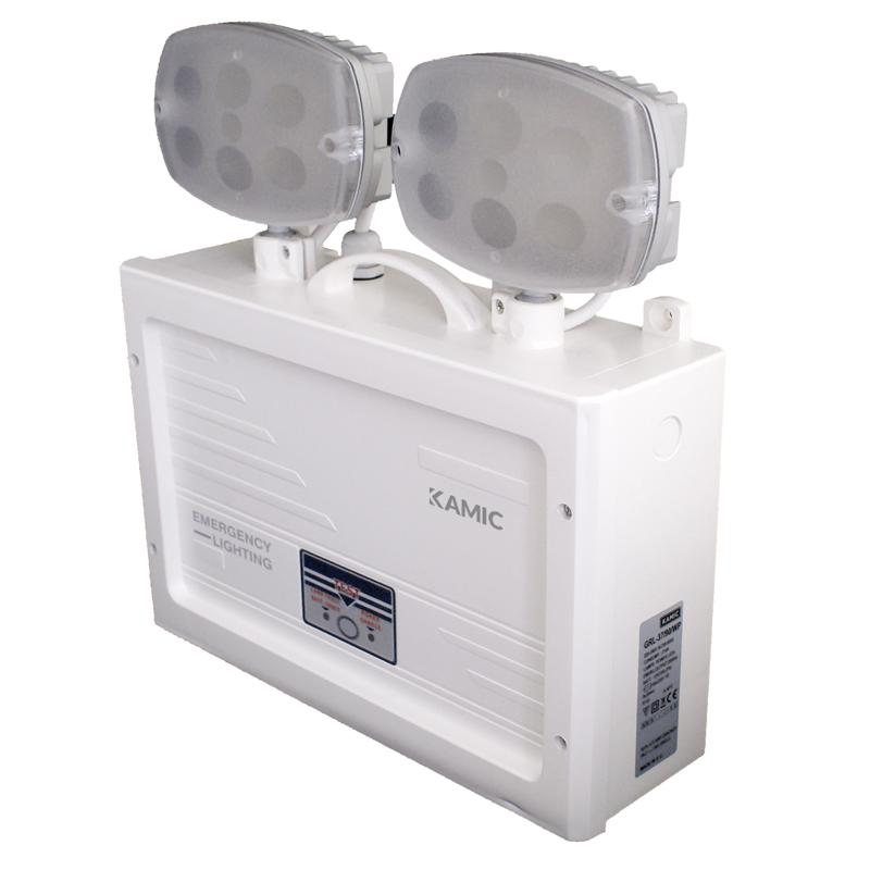 Armaturen ett robust strålkastaraggregat utrustat med högeffekts-LED med kapslingsklass IP65 avsett för beredskapsdrift inomhus i utrymmen som kräver ett kraftfullt ljusutbyte. Stomme i vit polykarbonat med 2st strålkastare i aluminium/transparent polykarbonat. Strålkastaraggregatet har inbyggd nödströmsautomatik med batteri. Testknapp finns på fronten för manuellt test. Aggregatet ansluts till nätspänning 230V AC 50-60 Hz för nödströmsövervakning och underhållsladdning. Ljusflöde: 3200 lm. Passar till exempelvis teatrar och biografer då det ej tänder upp vid test.