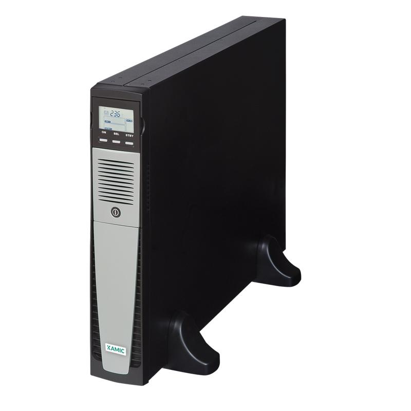 KAMIC SDH 2200. Via vridbar display samt i övrigt genomtänkt utformning och teknik kan UPS-modellen antingen placeras stående eller i 19” rack. Skyddar bland annat mot strömavbrott i ex: LAN (Local Area Networks) servers, kassasystem, televäxlar, industriella styrsystem etc. Batterier: 6 x 7Ah