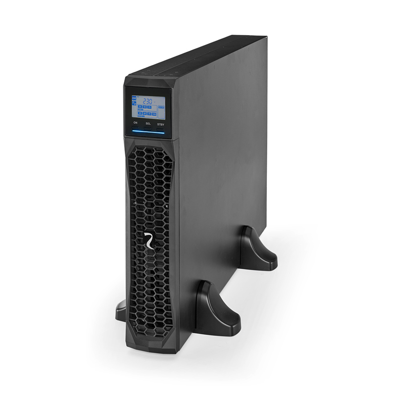 KAMIC SDH2 1500. Via vridbar display samt i övrigt genomtänkt utformning och teknik kan UPS-modellen antingen placeras stående eller i 19” rack. Skyddar bland annat mot strömavbrott i ex: LAN (Local Area Networks) servers, kassasystem, televäxlar, industriella styrsystem etc. Batterier: 3 x 9Ah