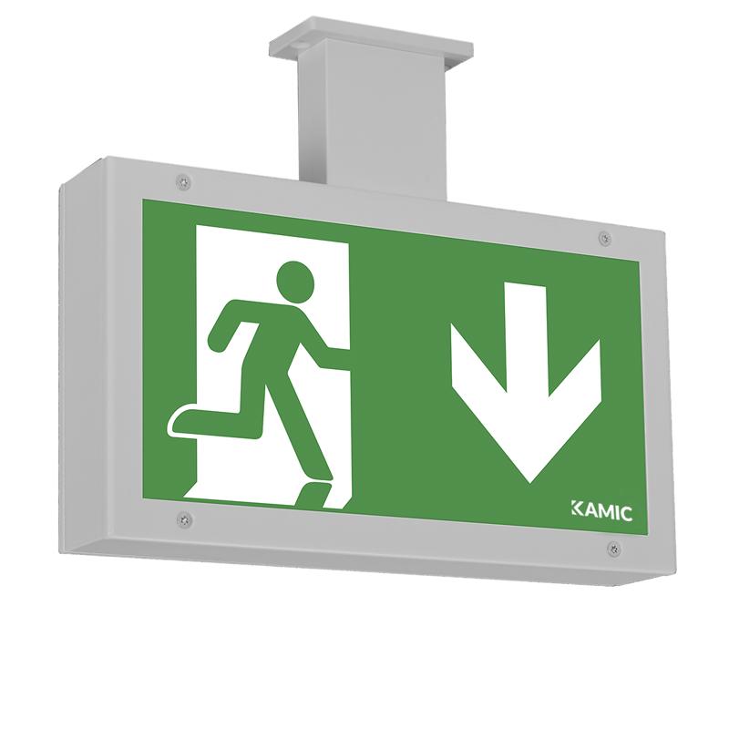Hänvisningsarmatur med högkapslingsklass och IK10. En armaturstomme i rostfri V2A för tak/pendel/flagg montage. Piktogram beställs separat. Armaturen har läsavstånd 32 meter.