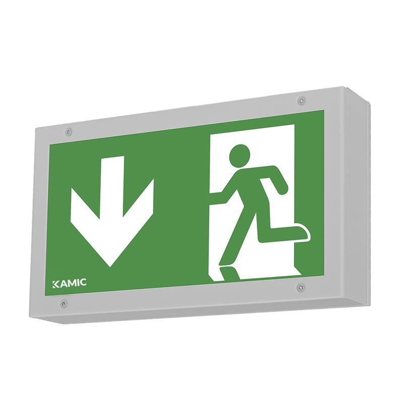 Hänvisningsarmatur med högkapslingsklass för central matning. Armaturstomme i rostfritt V2A stål. Armaturen monteras som enkelsidig på vägg. Piktogramset beställs separat. Armaturen har läsavstånd 32 meter.