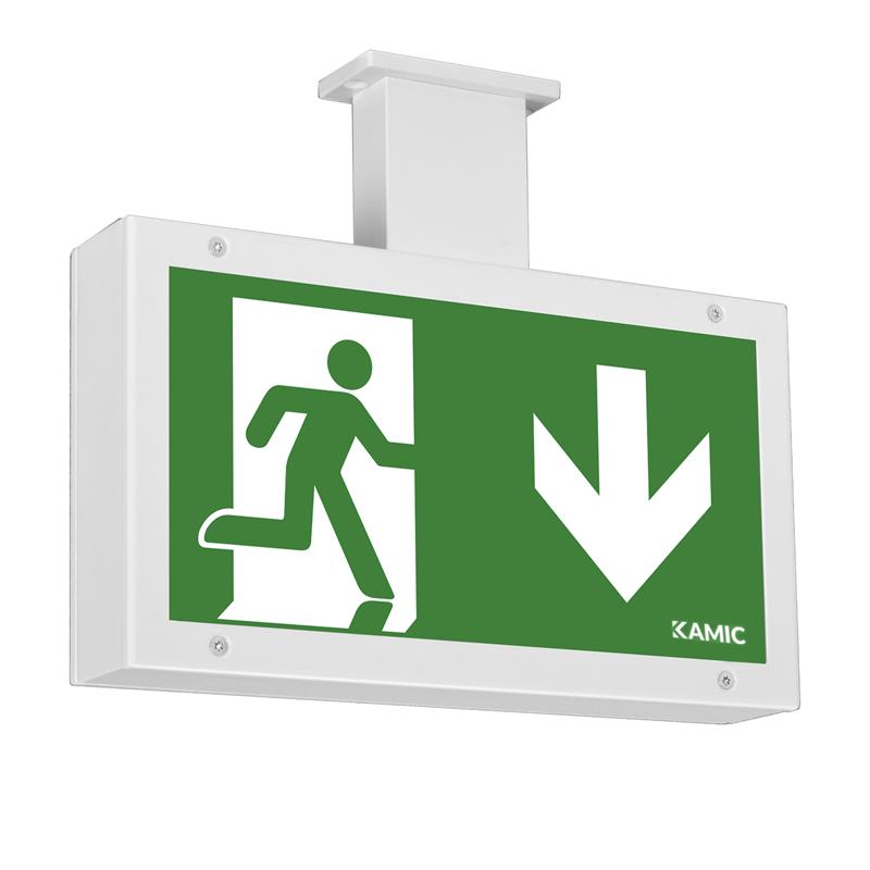 Hänvisningsarmatur med högkapslingsklass avsedd för central matning. En armaturstomme i vit stålplåt för tak, flaggmontage eller nedpendlad (Se tillbehör). Piktogram och montagetillbehör beställs separat. Armaturen har läsavstånd 32 meter.