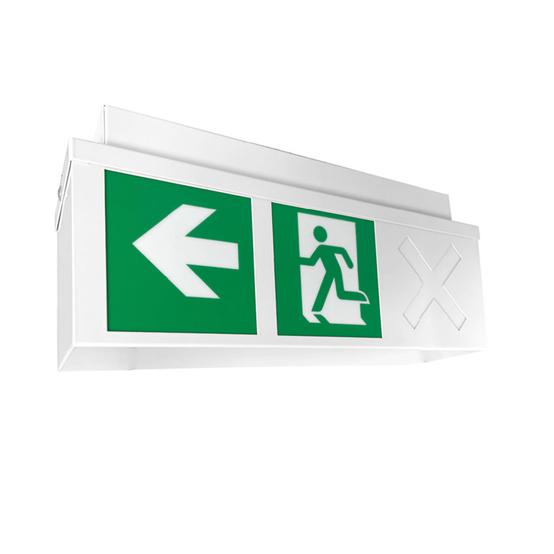Hänvisningsarmatur för dynamisk utrymning avsedd för Logica 24 systemet. En armaturstomme i vit stålplåt för takmontage.