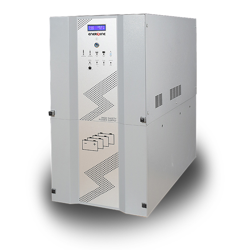 Reservkraftaggregat med batteri och testknapp. Anslutningsbar effekt max 4950W. Som standard 2st avsäkrade utgångar, en för permanentdrift och en för beredskapsdrift.