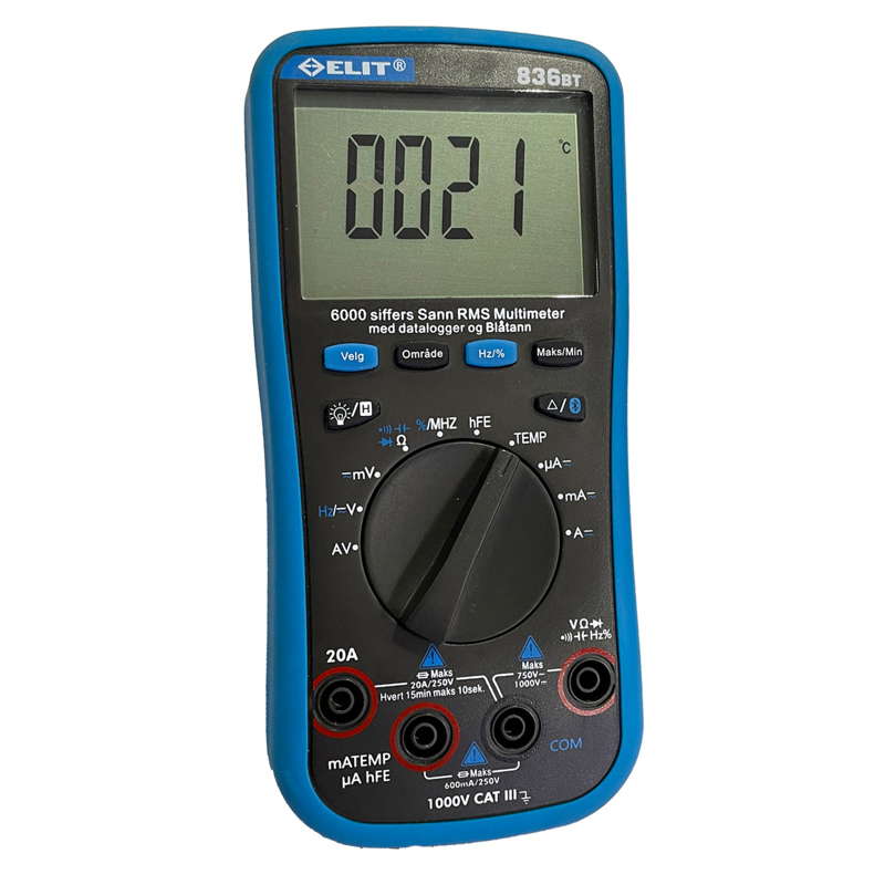 Multimeter med internt minne för loggning av data samt Bluetooth-kommunikation för överföring av data till PC. Dessutom kan man fjärravläsa instrumentet på mobilen och läsa av värden på din iOS \Androidenhet eller ställa in multimetern för loggning över tid. Data lagras i XML-format vilket gör det enkelt att efterbearbeta. Flera multimetrar kan anslutas till samma mobila enhet samtidigt. Fjärrinställningar av mätfunktioner kan göras via mobilappen.