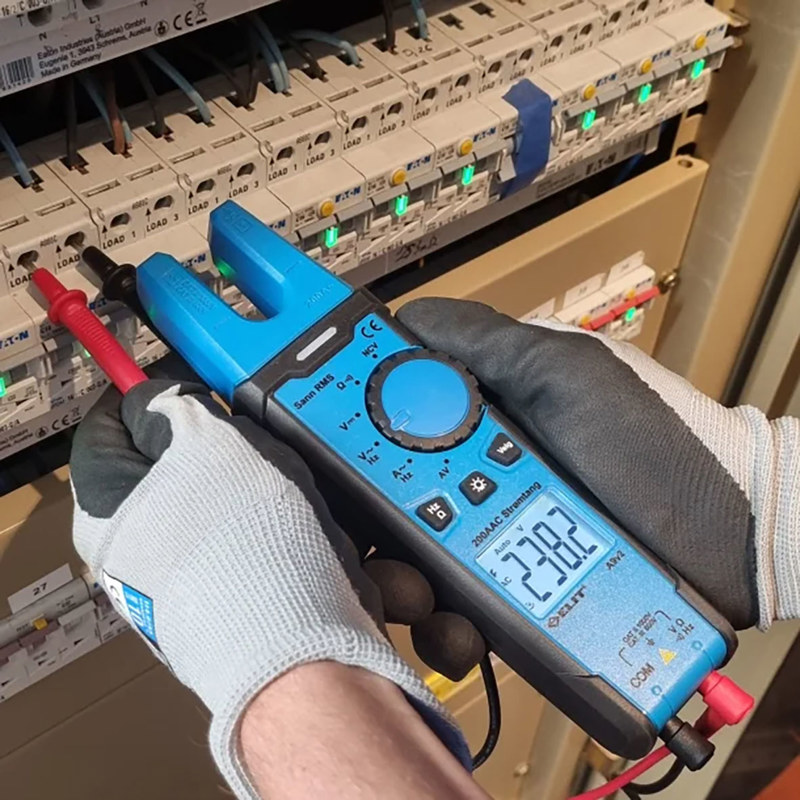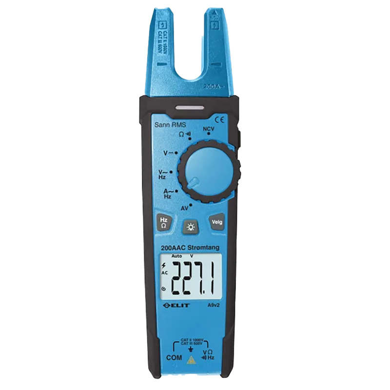En multimeter med öppen strömtång och bakgrundsbelyst display. Sant effektivvärde ger mycket noggranna resultat vid mätning i dagens elektriskt avancerade anläggningar. A9v2 har beröringsfri spänningsdetektor (NCV) med två känslighetsnivåer för noggrann detektering. Lysdiod indikerar nivån på spänningsmätning i grönt, gult eller rött. Ficklampa i fronten lyser effektiv upp mätområdet och belyst display underlättar avläsning. A9v2 mäter ström upp till 200A AC med den öppna strömtången och spänningar upp till 1000V AC/DC.