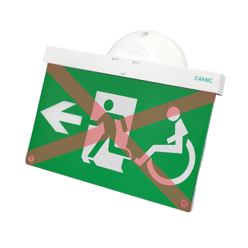 Hänvisningsskylt för Neptolux systemet med kryssfunktion. Armaturen kan monteras både på vägg, i tak, infälld och pendlad (se tillbehör). Levereras komplett med piktogram pil vänster HCP och inbyggt NiMH-batteri.