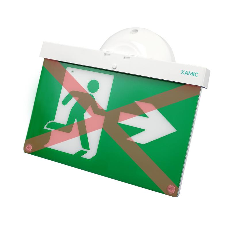 Hänvisningsskylt för Neptolux systemet med kryssfunktion. Armaturen kan monteras både på vägg, i tak, infälld och pendlad (se tillbehör). Levereras komplett med piktogram pil höger och inbyggt NiMH-batteri.