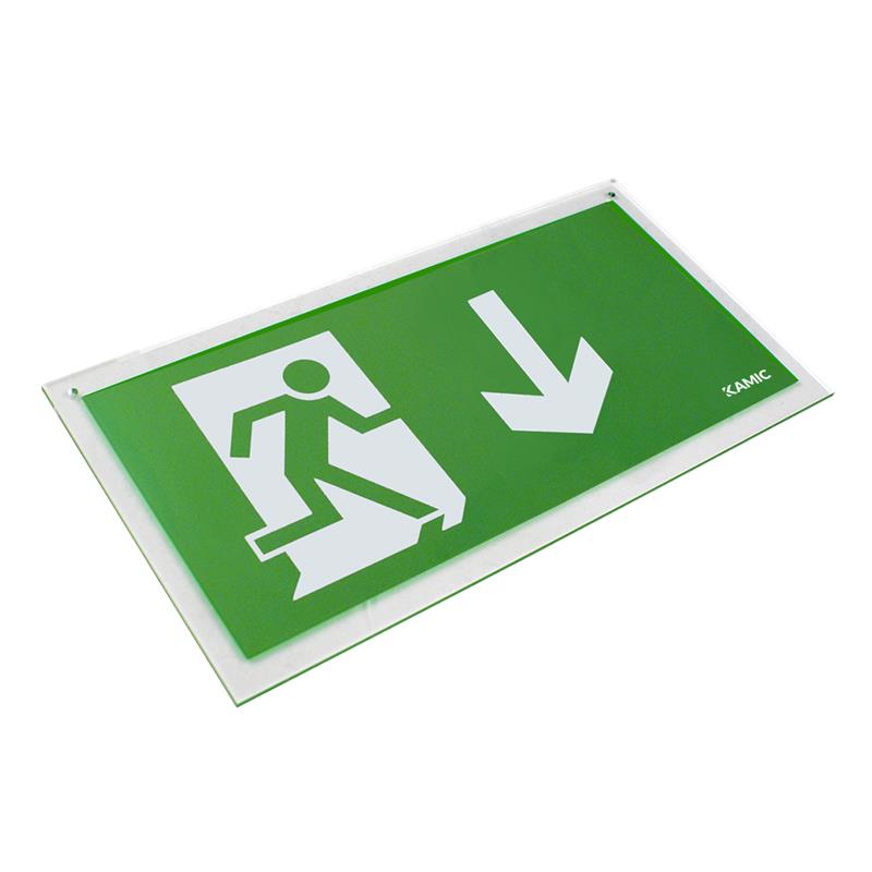 Dubbelsidig underhängande skylt för hänvisning pil ned/ned. Läsavstånd 28 meter. Passar till Formula 65 E7348680, E7348625, E7348628).