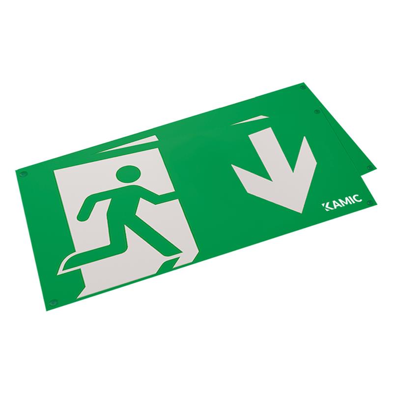 2 st piktogramskyltar för hänvisning pil ner med läsavstånd 64 meter. Till armaturstomme Profilux IP44 (E7343590).