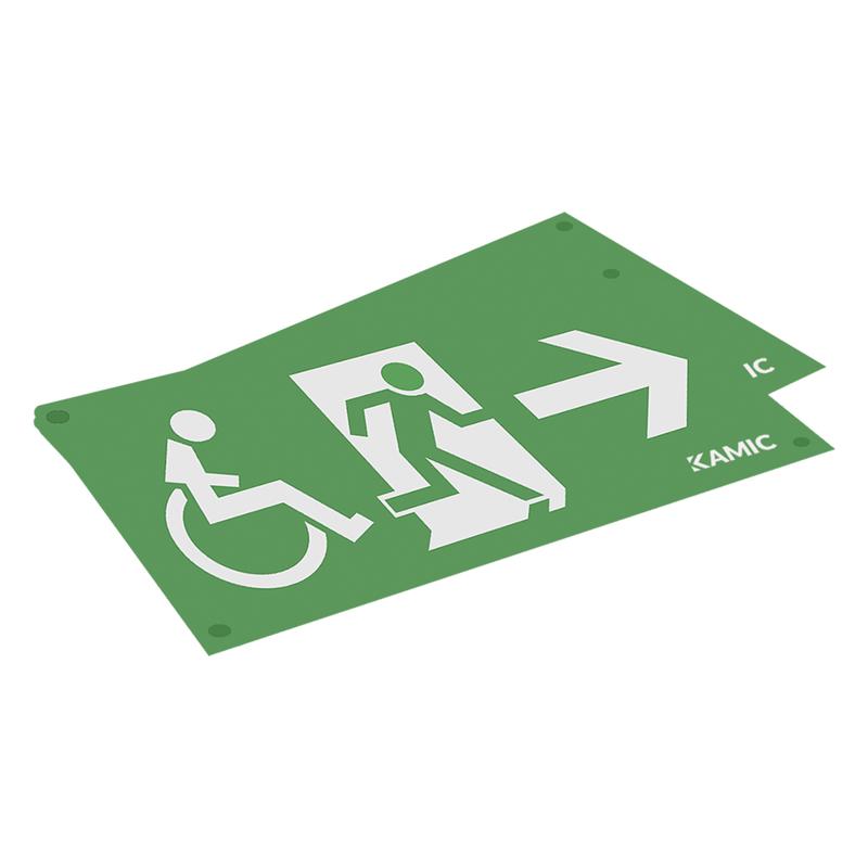 2 st piktogramskyltar med rullstolssymboler. 1st pil höger och 1st pil vänster med läsavstånd 40 m. Passar armaturstomme Profilux IP44 (E7343589).