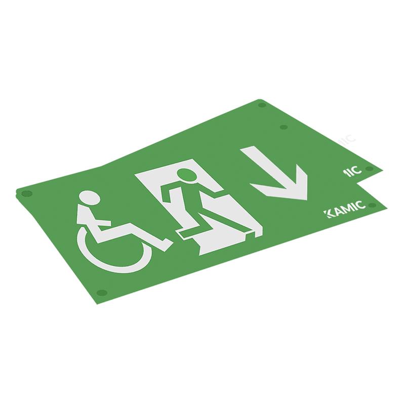 2 st piktogramskyltar med rullstolssymbol, hänvisning pil ner med läsavstånd 64 meter. Till armaturstomme Profilux IP44 (E7343590).