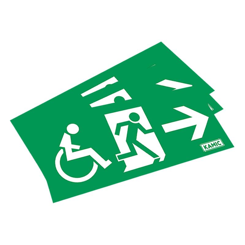Piktogramset med rullstolssymbol för hänvisning pil höger och pil vänster samt pil ned. Läsavstånd 20 meter.Passar till hänvisningsarmatur Speedlux (E7340075, E7340076 och E7340077).