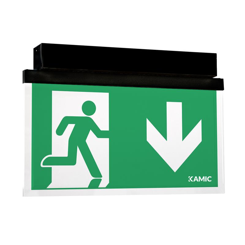 En hänvisningsarmatur avsedd för Logica 230 systemet med en stomme i svartlackerad rostfritt stål för takmontage. Armaturen har läsavstånd 30 meter. Armaturen monteras i tak. Piktogramset medföljer i leveransen.
