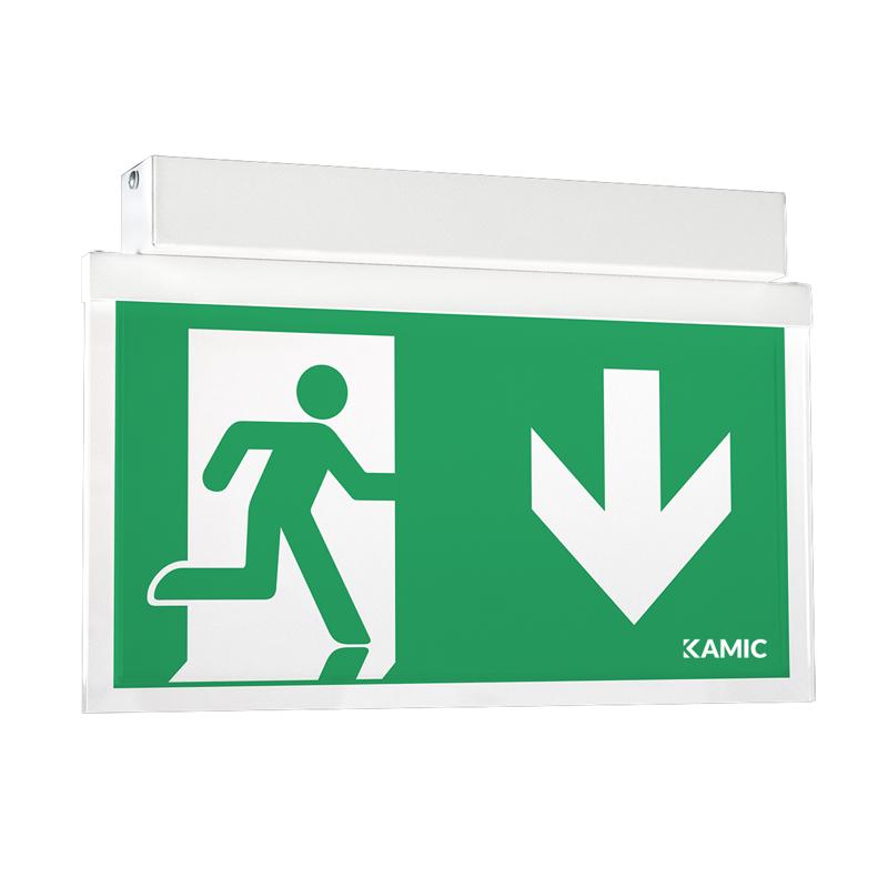 En hänvisningsarmatur avsedd för Logica 24 systemet med en stomme i vitlackerad rostfritt stål för takmontage. Armaturen har läsavstånd 30 meter. Piktogramset medföljer i leveransen.