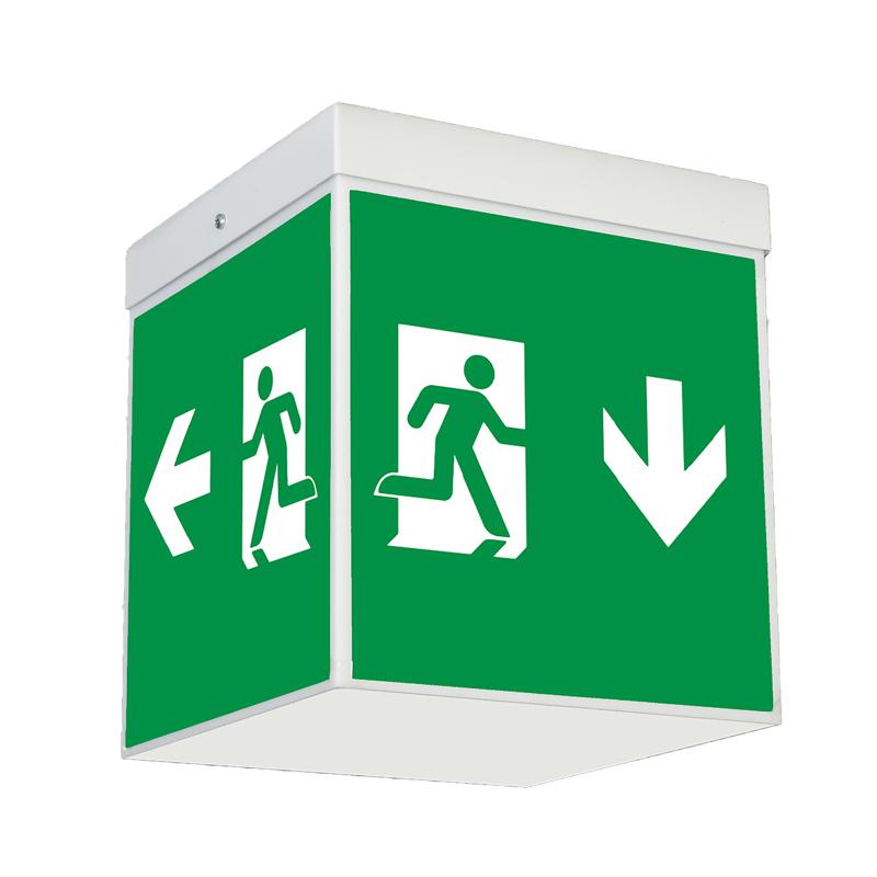 Kvadratisk hänvisningsarmatur till Logica FM systemet med lithium batteri. Armaturstomme i vit stålplåt RAL 9003 som kan installeras på flera olika montagesätt. Armaturtypen kan monteras i tak eller nedpendlad se olika tillbehör. Armaturen finns med läsavstånd 22meter och 44meter. Piktogramfolie beställs separat.