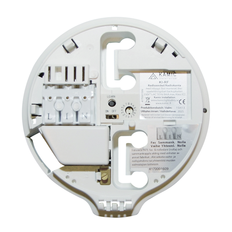 Används tillsammans med Brandvarnare E6303417, E6303421 eller Värmedetektor E6303422 för trådlös sammankoppling av upp till 15 st. brandvarnare. Radiofrekvens 868MHz med räckvidd upp till 100m i fritt fält. Inbyggt litiumbatteri för säker drift i 10år eller längre. Kan kombineras med trådbundna 230V brandvarnare i samma system med max 2,5mm ledararea som ansluts i snabbplint. Kan monteras på takdosa, över utkast eller med utanpåliggande kabel.