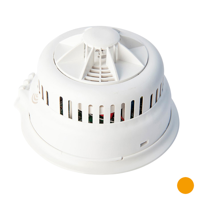 Denna värmedetektor ansluts till 230V nätet och är ett bra komplement i de utrymmen där brandvarnare inte är lämpligt. Batteribackup med tre stycken utbytbara 1,5V AAA batterier, säkerställer drift vid strömavbrott. Larmar med den inbyggda sirenen vid 57°C. Sammankoppling med kabel som standard och ansluts med fas-, noll- och signalledare, max 2,5mm2 och 250m. Om man önskar trådlös sammankoppling kan man ansluta radiomodul E6304285 som tillbehör och man kan kombinera trådlös och trådbunden sammankoppling. Enkel att installera över ett utkast, på takdosa eller utanpåliggande kablage. Med FastFix-systemet monteras den enkelt på installerad sockel. Som ytterligare tillbehör finns reläsockel E6304286 för styrning av extern utrustning som t.ex. dörrstängare och blixtljus och fjärrkontrollen underlättar test vid högt i tak. Godkänd enligt EN14604:2005/AC:2008 med ljudtryck på 85dBm på 3 meter. Levereras med monteringssockel, skruv och plugg, 3 st 1,5V AAA batterier och svensk bruksanvisning. Notera! Denna modell är inte bakåtkompatibel med brandvarnare E6303345, E6303346, eller E6303347 och inte heller med reläsockel E6303348 eller radiomodul E6303349. Den gamla monteringssockeln kan dock användas.