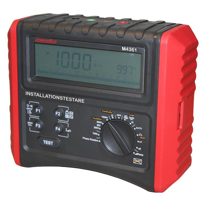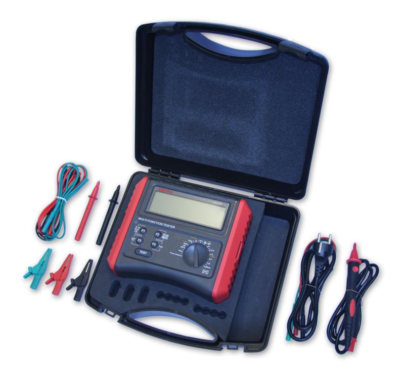 För installationskontroll enligt Elinstallationsreglerna. Med belyst display och varning vid felaktig inkoppling. Jordfelsbrytartest, Loopimpedans, Kortlutningsström, Kontinuitet, Isolationsresistans, Spänning och Fasföljd. Levereras med väska, testsladdar, vägguttagsadapter mätspetsar, krokodilklämmor, nackband, batterier, protokollmallar för dokumentation, snabbguide och svensk bruksanvisning.